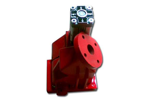 旋轉給料機選用螺旋彈簧座式安裝在支承架上,支承架與帶外齒的推力球軸承的外圈聯接,底座與軸承的內圈聯接。轉動部分由XWD系列行星擺線針輪減速機驅動。準備給料時,啟動減速機,帶動給料機和支承架轉動,快到給料點時,減速機斷電并反接制動,使給料機準確地停在給料點,然后給料機啟動,開始給料,給料完畢后,給料機反向轉動一定角度后,停止。